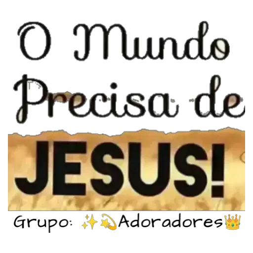 Uma imagem com o texto 'O Mundo Precisa de JESUS!' em letras grandes e decorativas, com um fundo que parece chamas e a palavra 'Grupo: Adoradores' na parte inferior.