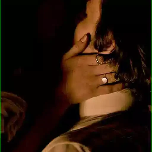 Uma pessoa com o rosto coberto pela mão, com um anel no dedo e pulseira, em um ambiente escuro.