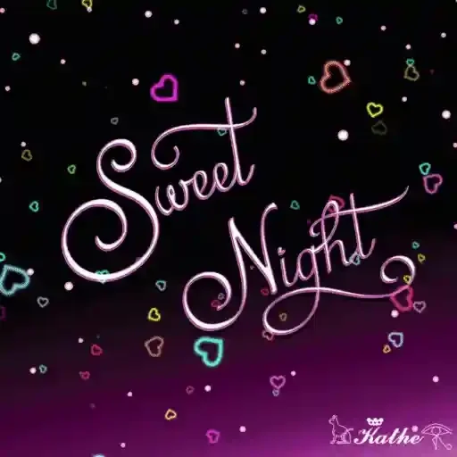 Uma noite escura com estrelas e corações coloridos. O texto 'Sweet Night' em rosa cursivo.