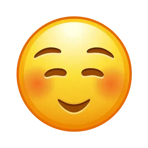 Rosto de emoji amarelo com sorriso tímido e bochechas rosadas