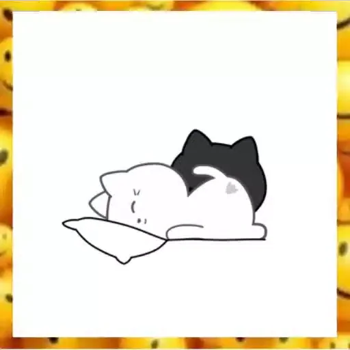 Um desenho de um gato preto e um gato branco dormindo em uma almofada.