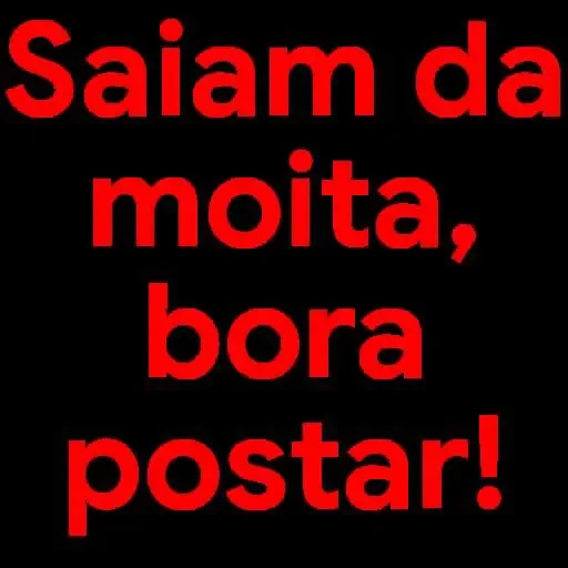Um texto em vermelho sobre fundo preto. A frase 'Saiam da moita, bora postar!' está escrita em letras maiúsculas e vermelhas.