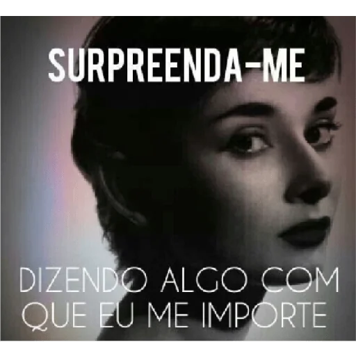 Rosto de uma mulher com expressão séria e olhar para o lado, com as frases 'SURPREENDA-ME' e 'DIZENDO ALGO COM QUE EU ME IMPORTE' sobrepostas.