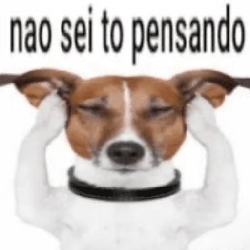 Um cachorro com expressão de pensamento, mãos na cabeça e texto 'nao sei to pensando'