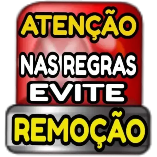 Um aviso com texto em amarelo e branco sobre um fundo vermelho e cinza, dizendo 'ATENÇÃO NAS REGRAS EVITE REMOÇÃO'.