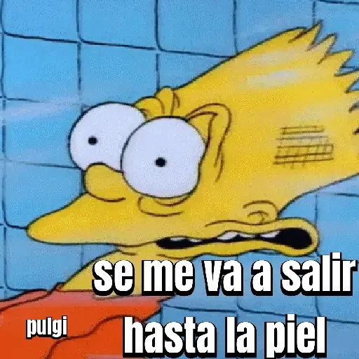 Imagem do personagem Bart Simpson, dos Simpsons, com expressão de surpresa e dor, em um fundo de azulejos. Ele está com a frase 'se me va a salir hasta la piel' sobreposta.