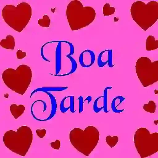 Um fundo rosa com corações vermelhos e o texto 'Boa Tarde' em azul.