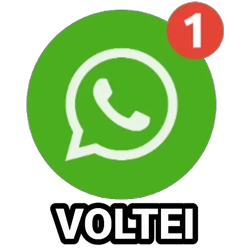Ícone verde do WhatsApp com um '1' vermelho no canto superior direito e o texto 'VOLTEI' em branco na parte inferior.