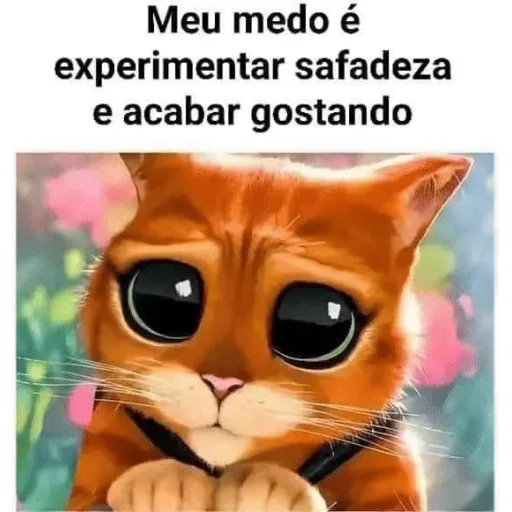 Gato laranja com expressão curiosa e texto "Meu medo é experimentar safadeza e acabar gostando"