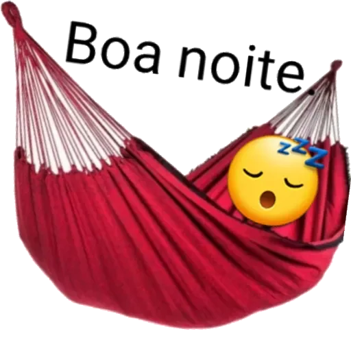 Um emoji amarelo com expressão de sono e boca aberta está deitado em uma rede vermelha com as palavras 'Boa noite' acima.