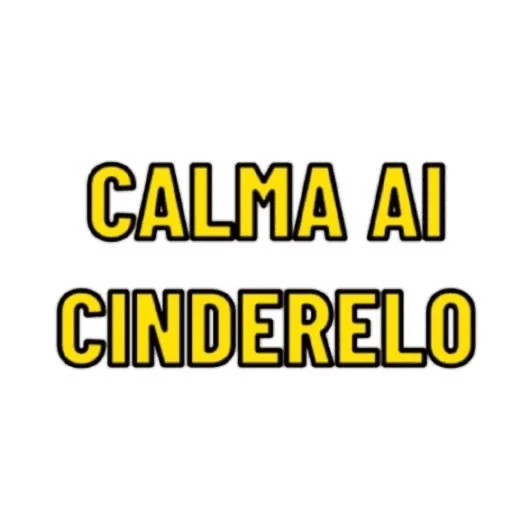 Um texto em amarelo com contorno preto que diz 'CALMA AÍ CINDERELO'.