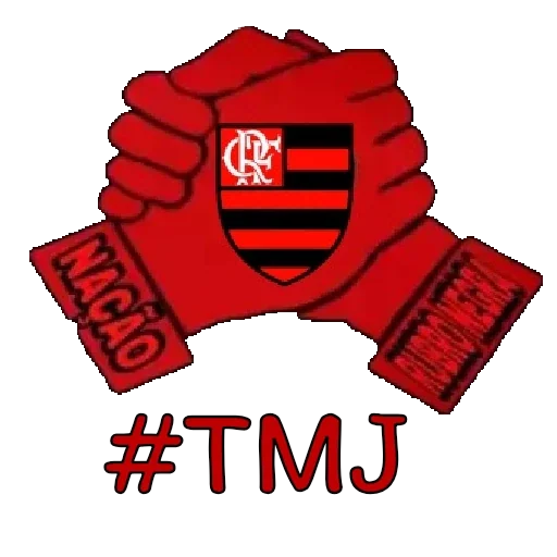 Dois punhos cerrados em vermelho com um escudo no centro, contendo faixas pretas e vermelhas e a sigla 'CRF' em branco. Abaixo, '#TMJ' em vermelho.