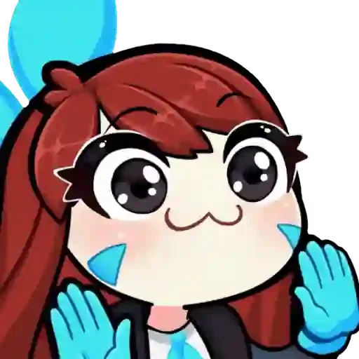 Garota de anime com cabelo vermelho e olhos grandes, usando luvas azuis, com expressão surpresa ou tímida.