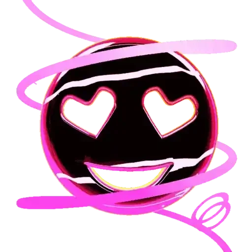Um rosto sorridente com olhos em forma de coração, desenhado com traços de rosa e preto.