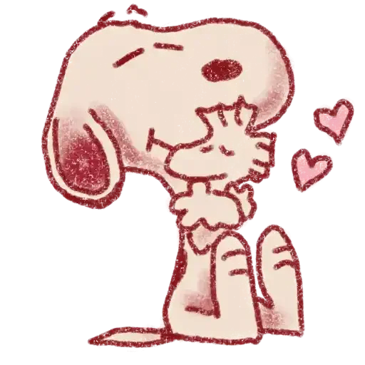 Snoopy e Woodstock se beijando, com corações ao redor, em um desenho simples e fofo.