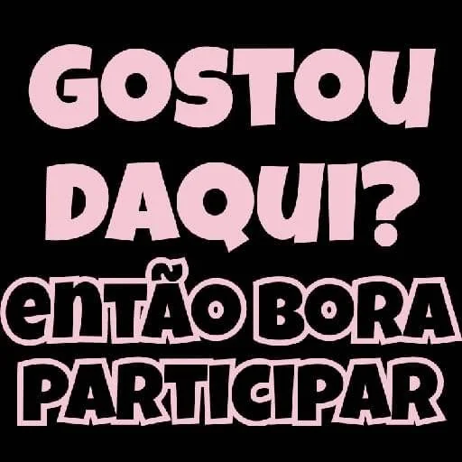 Um sticker com texto em rosa e preto sobre fundo preto. O texto em rosa lê 'GOSTOU DAQUI?' e em preto 'entÃO BORA PARTICIPAR'.