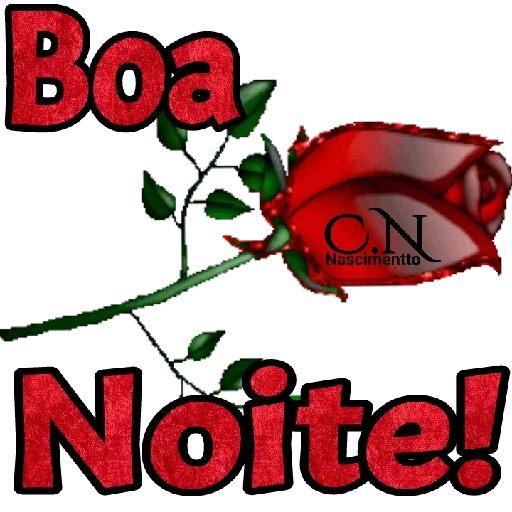 Uma rosa vermelha com folhas verdes e o texto 'Boa Noite!' em letras grandes vermelhas. A rosa tem um selo com 'C.N Nascimiento'.