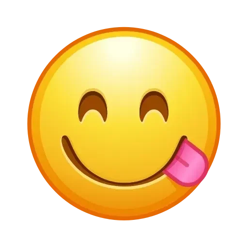 Um emoji de rosto sorridente com a língua para fora, mostrando uma expressão de brincadeira ou zombaria. A face é amarela com olhos castanhos e uma língua rosa.