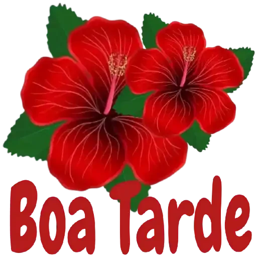 Três flores vermelhas de hibisco com folhas verdes e o texto 'Boa Tarde' em vermelho.