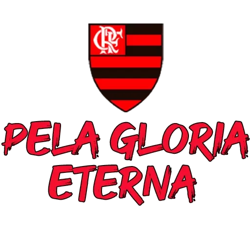 Escudo com listras vermelhas e pretas e texto 'PELA GLORIA ETERNA' em vermelho.