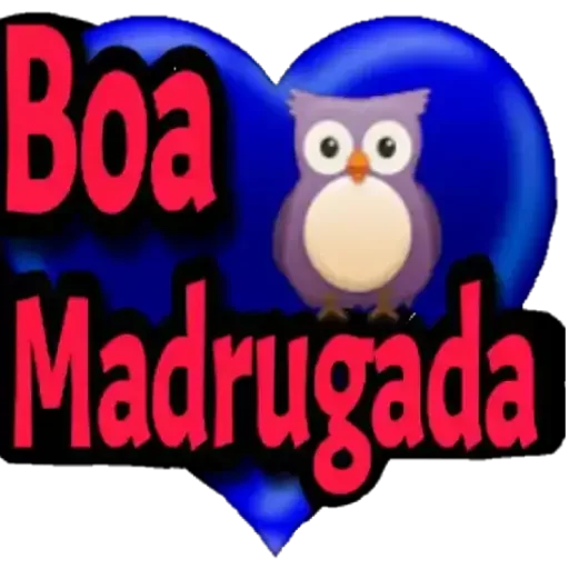 Um coração azul com um coruja cinza e olhos grandes, com o texto 'Boa Madrugada' em vermelho.