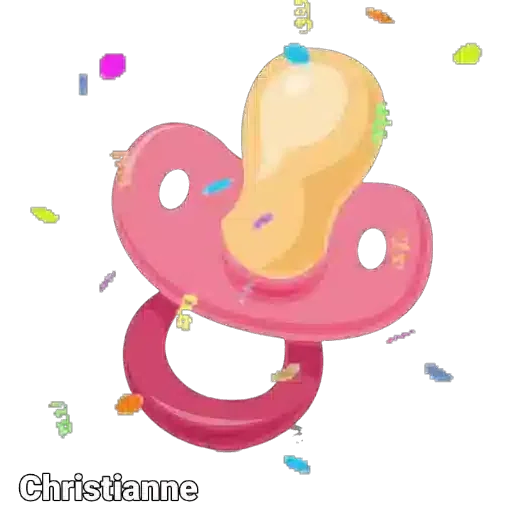 Um bico de bebê rosa com confetes coloridos ao redor, em um fundo branco. O nome 'Christianne' aparece no canto inferior esquerdo.