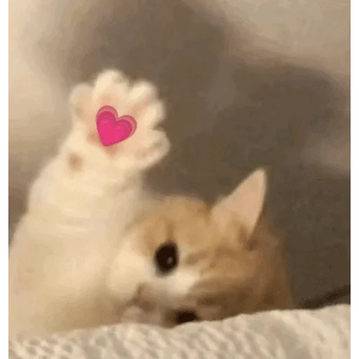 Um gato laranja e um gato branco com uma pata levantada, tendo um coração rosa no centro da pata.