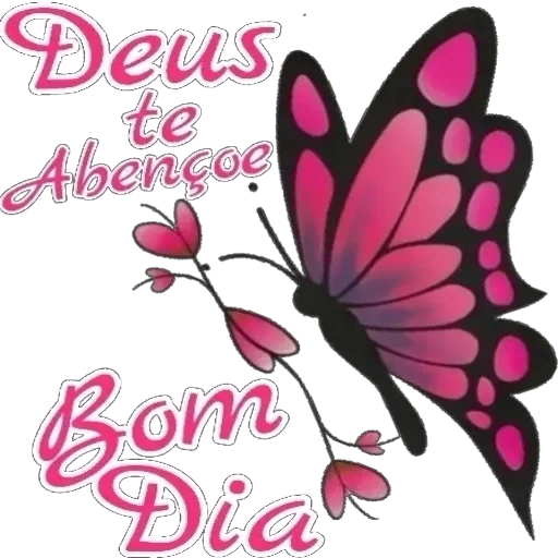 Uma borboleta rosa com asas abertas e um ramo de flores, com o texto 'Deus te Abençoe Bom Dia' em letras rosadas.