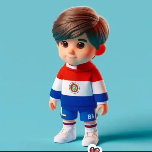 Menino de cabelo castanho usando uniforme de futebol com as cores da bandeira do Chile.