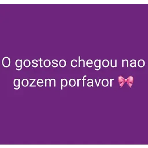 Um fundo roxo com o texto "O gostoso chegou nao gozem porfavor" em branco, acompanhado de um laço rosa.