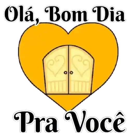 Um coração amarelo com uma janela fechada no centro, com a frase 'Olá, Bom Dia Pra Você' em letras pretas.