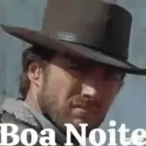 Um homem com chapéu e barba, olhando para baixo, com o texto 'Boa Noite' na parte inferior.
