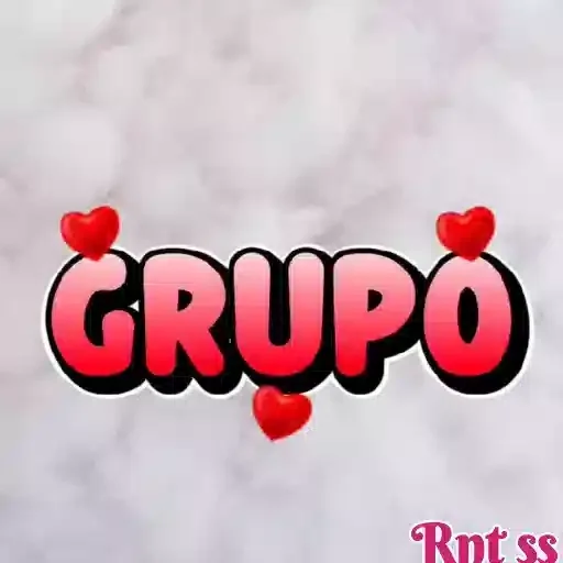A palavra 'GRUPO' em letras grandes rosa com contorno preto e corações vermelhos ao redor, sobre fundo branco com mármore. Parte inferior direita cortada com texto rosa.
