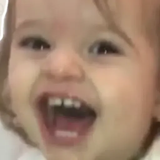 Rosto de bebê com boca aberta e dois dentes na frente, expressão de surpresa ou fala.