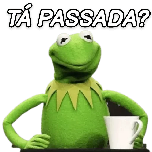Kermit, o sapo do Muppet, com um sorriso discreto e olhos arregalados, ao lado do texto 'NÃO ME DIGA' em letras…
