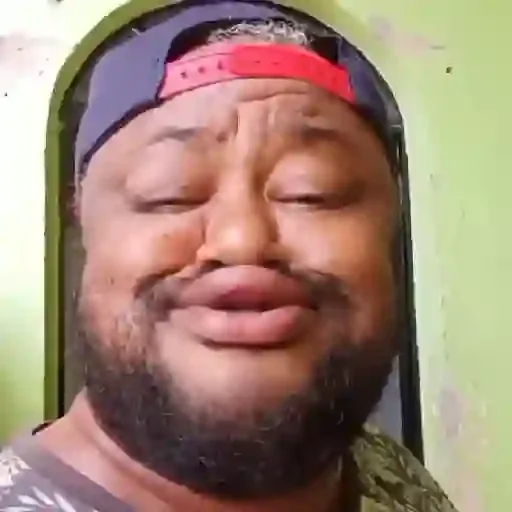 Homem com chapéu de baseball vermelho e azul, olhos fechados e expressão de felicidade ou alegria.