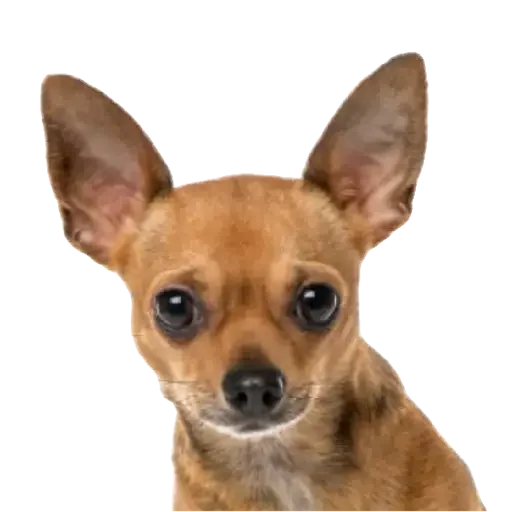 Um cachorro Chihuahua marrom com orelhas grandes e olhos pretos redondos, olhando diretamente para a frente.