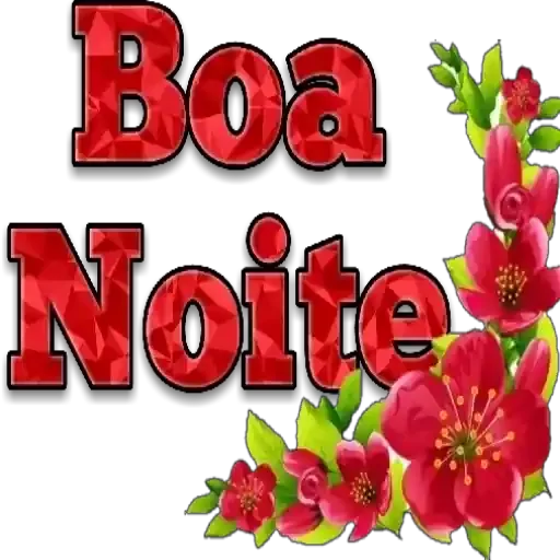 Um desenho com as palavras 'Boa Noite' em letras grandes e vermelhas, decoradas com flores rosadas e folhas verdes.
