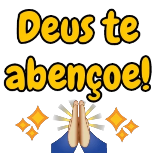 Mãos juntas em oração com a frase 'Deus te abençoe!' em letras grandes e amarelas, com estrelas douradas ao redor.