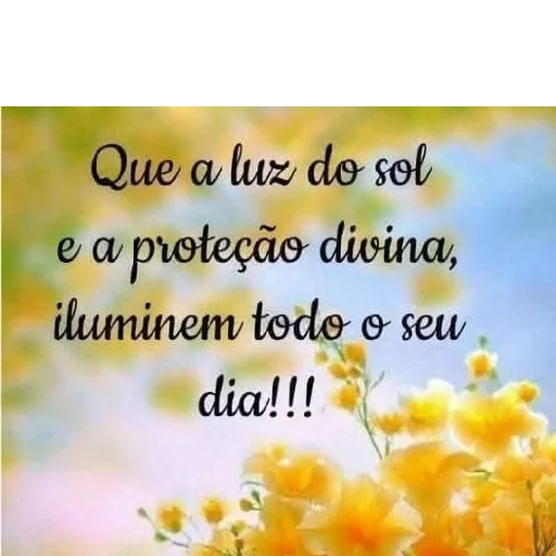 Imagem com texto 'Que a luz do sol e a proteção divina, iluminem todo o seu dia!!!' sobre fundo de flores amarelas desfocadas com céu azul.
