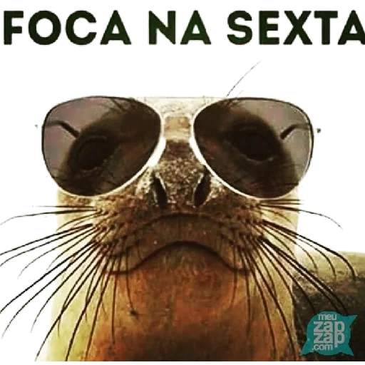 Um focinho de foca com óculos de sol e a frase 'FOCA NA SEXTA' em letras verdes.