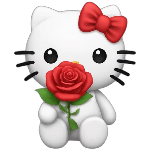 Hello Kitty com uma rosa vermelha na boca e um laço vermelho no cabelo.