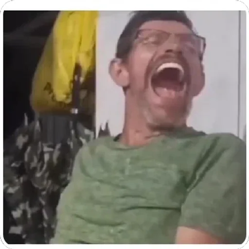Homem com camisa verde e óculos, expressão de surpresa ou choque, boca aberta.