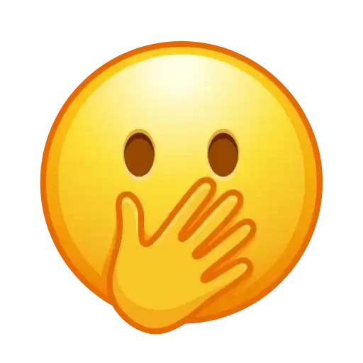 Um emoji de rosto amarelo com a mão na frente da boca, parecendo segurar um segredo ou fazer um gesto de silêncio. Os olhos são marrons e a expressão é de surpresa ou discrição.