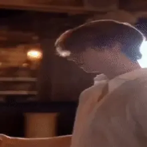 Um jovem com expressão séria e cabelo castanho, vestindo uma camisa clara, olhando para baixo em um ambiente escuro.