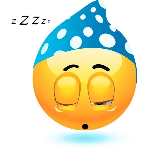 Um emoji de rosto amarelo com olhos fechados e um ponto preto na boca, usando um lenço azul com manchas brancas na cabeça. Há 'zZz' escrito ao lado.