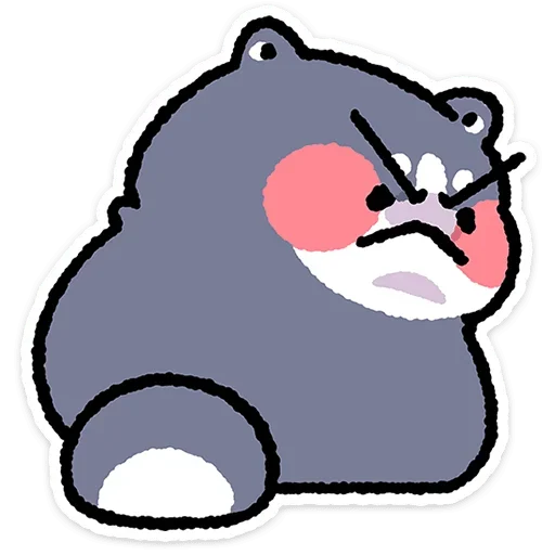 Um urso cinza com expressão de raiva ou frustração, bochechas rosadas e olhos cerrados.