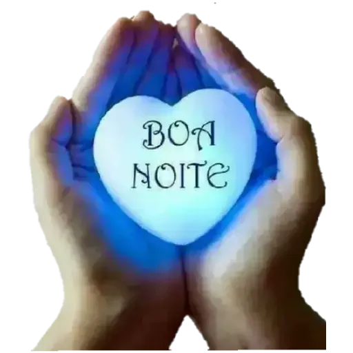Mãos segurando um coração branco com a frase 'BOA NOITE' escrita no centro.