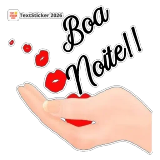 Uma mão com unha pintada de vermelho lança beijos vermelhos com a frase 'Boa Noite!' em letras cursivas pretas.