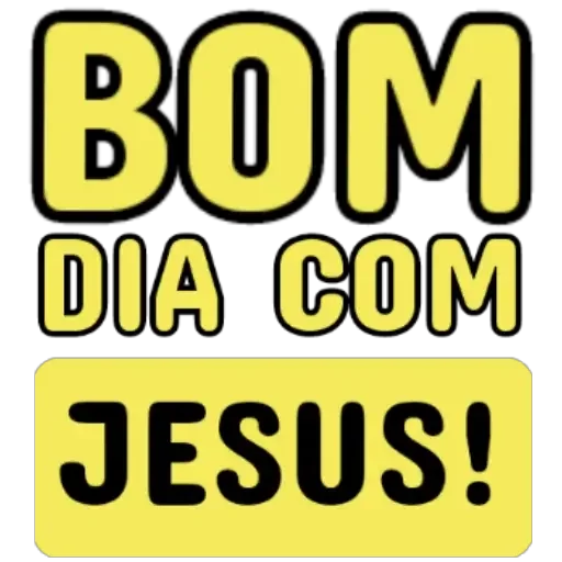 Um sticker com as palavras 'BOM DIA COM JESUS!' em letras grandes e amarelas com contorno preto, em um fundo branco.